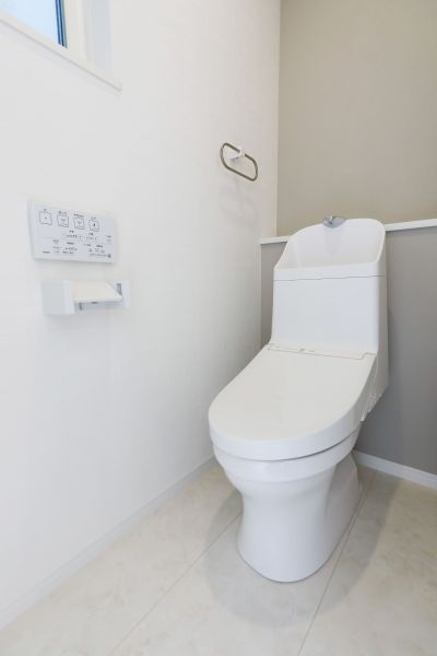 1階トイレ:多機能で使いやすく、お手入れしやすい工夫が詰まったトイレを採用。キレイを保て節電節水効果も有。