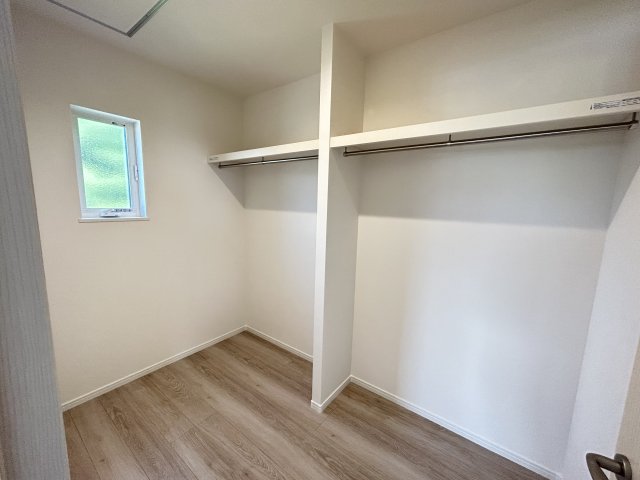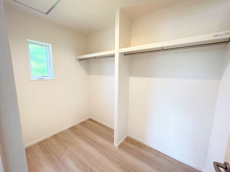 WIC完備。約3帖の収納スペースに家族のものをまとめて収納可。ファミリークロークとして使えて便利