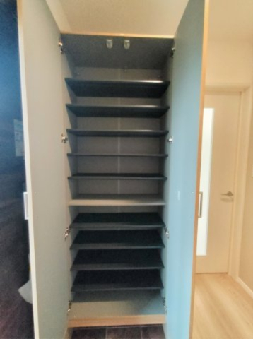 シューズボックス。大容量の靴を収納可。樹脂製の棚板は水洗い出来てお手入れ簡単。