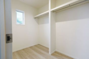 WIC完備。約3帖の収納スペースに家族のものをまとめて収納可。ファミリークロークとして使えて便利♪