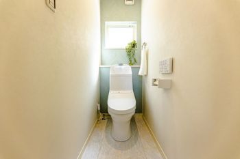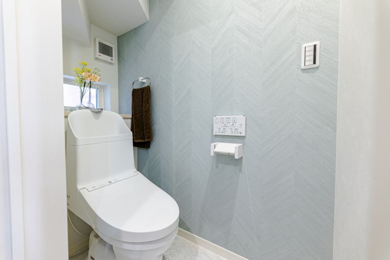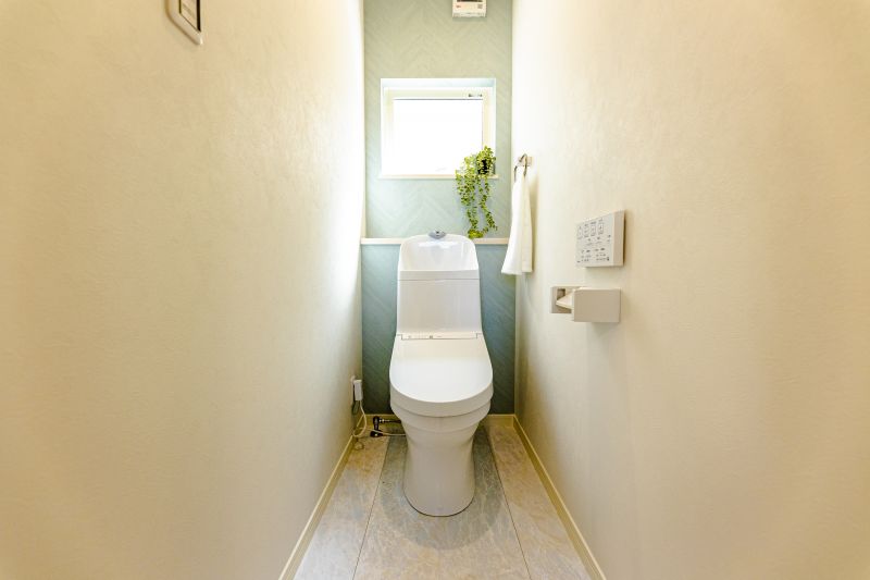 【トイレ】1階トイレ。多機能で使いやすく、お手入れしやすい工夫が詰まったトイレを採用。キレイを保て節電節水効果も有。