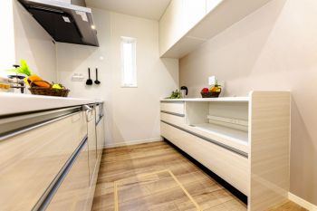 【キッチン】ホーロー加工の幅2550のキッチン。お子様とお料理するにもゆとりがあります♪傷がつきにくいのも特徴♪
