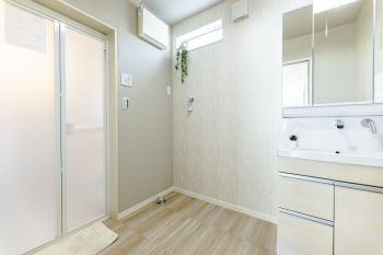 【洗面脱衣室】使いやすいシンプルなデザインの三面鏡洗面台。身支度時にうれしい機能性や収納力もしっかりと備えてます。