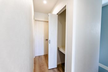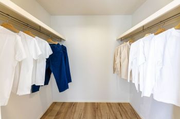 【W.I.C】1階ウォークスルークローゼット。 玄関ホールと洗面脱衣室の両方から出入りできる大容量のW.I.C♪